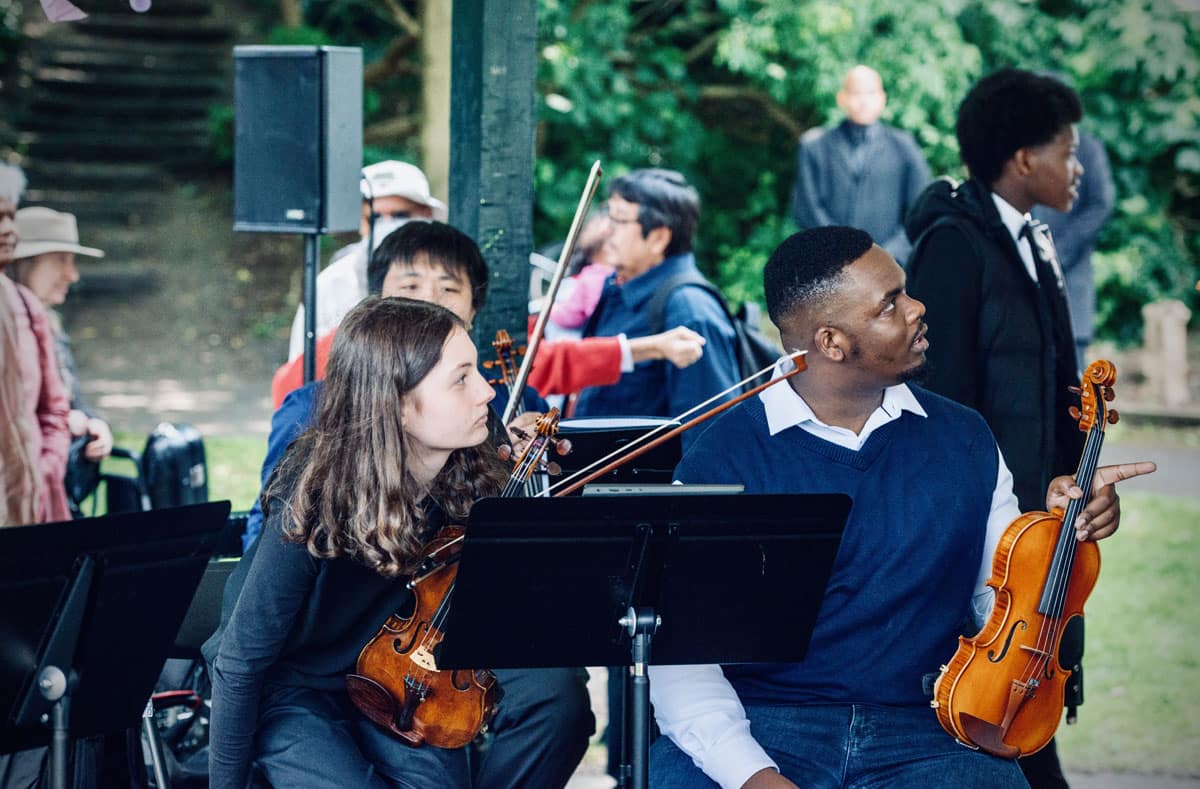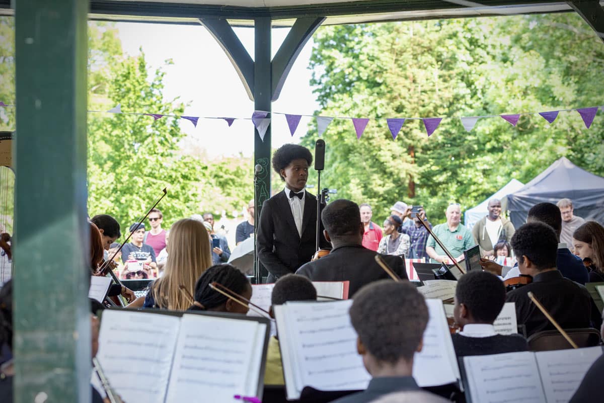 There was also some impressive conducting of the orchestra by 14-year-old Matthew Umole, who said: “I’ve not been conducting for a long time –but I absolutely love it. It’s easy because I’m not facing the audience, but still, I was a bit scared but did it anyway.” Matthew, who comes from and attends school in Hackney, added: “The orchestra drew a large crowd today, and we have had a lot of fun performing our music to them. For any person wanting to take up classical music, I would say do it – don’t let anyone or anything stop you – prove people wrong by aspiring and living up to your dreams.” 16-year-old Soprano Soloist Alexandra Bell-Cobbold was equally encouraging of those from diverse communities acting upon their interest in classical music: “You can get involved in classical music at any age,” she said. “I was 11 years old when I first began in the church choir before continuing to develop my voice and love for singing as a part of the East London School of Music. You can do anything you put your mind to, including pushing through any barriers which may come your way. Whether you want to be a part of a choir or classical music – just know that you can because music is for everyone.”
