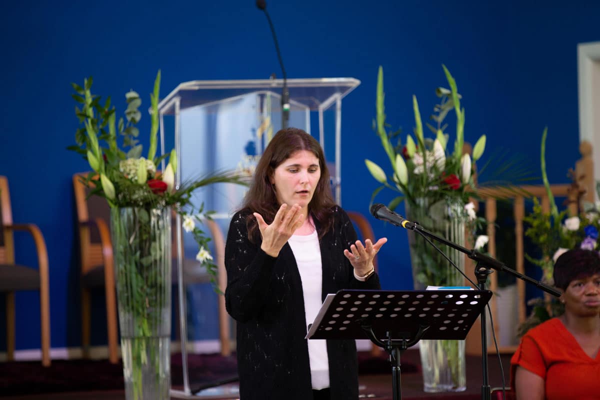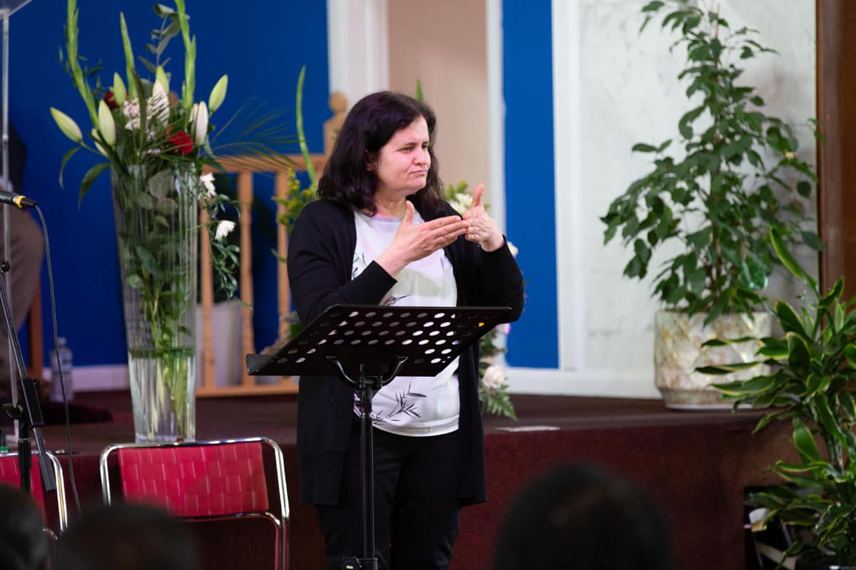 Dace Miksite (Deaf Community) blessed the children with a bible story in signed language Interpreted by BSL Interpreters.